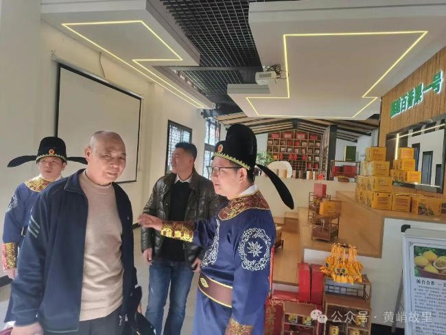 陵园祭拜结束后,大家到进贤村口的“峭公樟”前合影留念,随后前往进贤村参观。和平镇党委副书记张森亲自带着大家走完了进贤村的相关人文景点,张森副书记和黄勇军会长就“根植黄峭文化,利用黄氏宗亲流量带动进贤村文旅经济发展”等话题交流了意见。宗亲们走进了位于进贤村街头的宗史馆,认真观看了关于黄峭公家族文化的介绍。